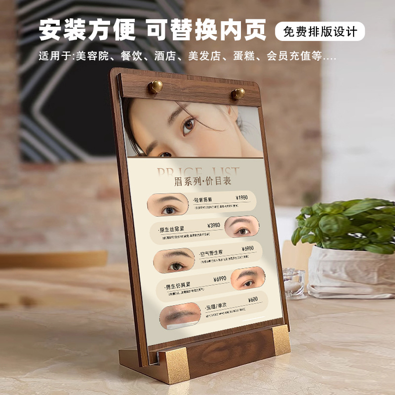 Акриловая настольная карта с твердым деревом акрила A4 Деревянная обеденная карта Деревянная обеденная карта Рекламная карта знак знаком ценовой карты