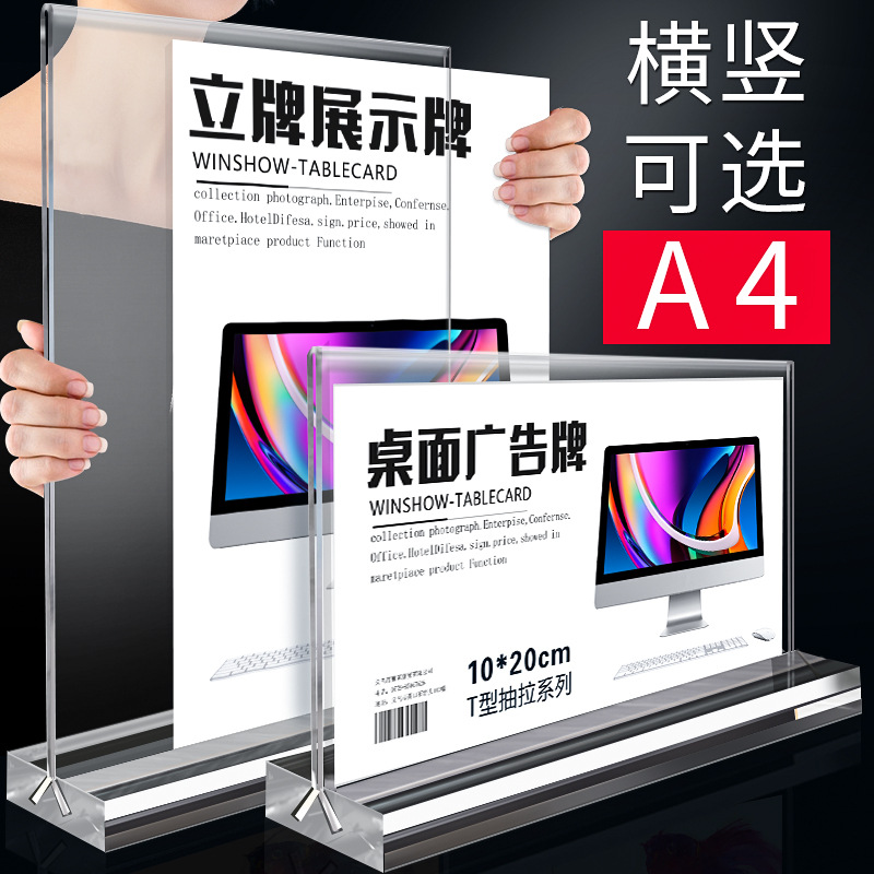Утолщенная базовая карта A4 Карта дисплея Акриловая подставка Т-образная карта настольной карты прозрачная карта настольной карты Вертикальная табличная карта A5