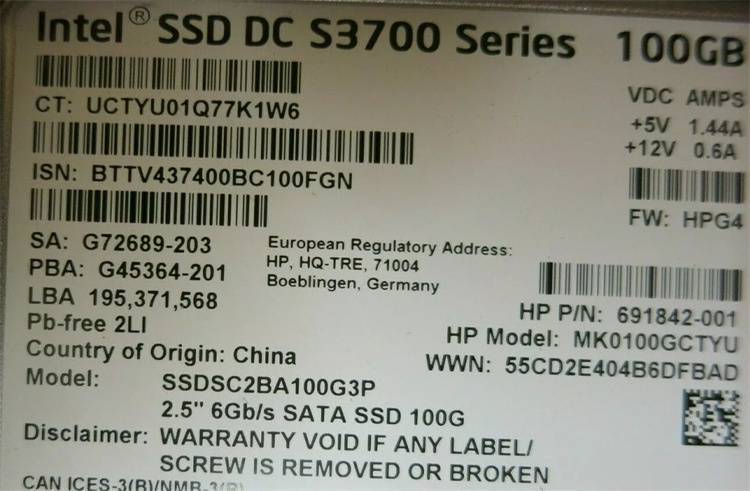 HP 692164-001 100G 6G SATA SSD 2,5-дюймовый 691862-B21 жесткий диск