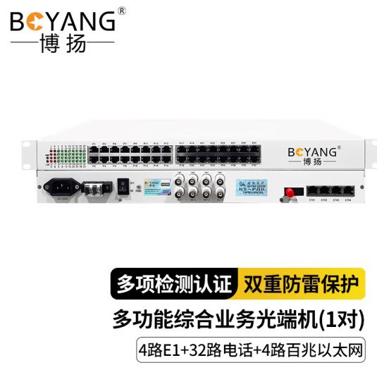 博扬 2M Телефонный оптический конец 4E1+32 Канал Телефон 4 Канал 100 м 60 км однорубки-32P4E4FE Двойной питание