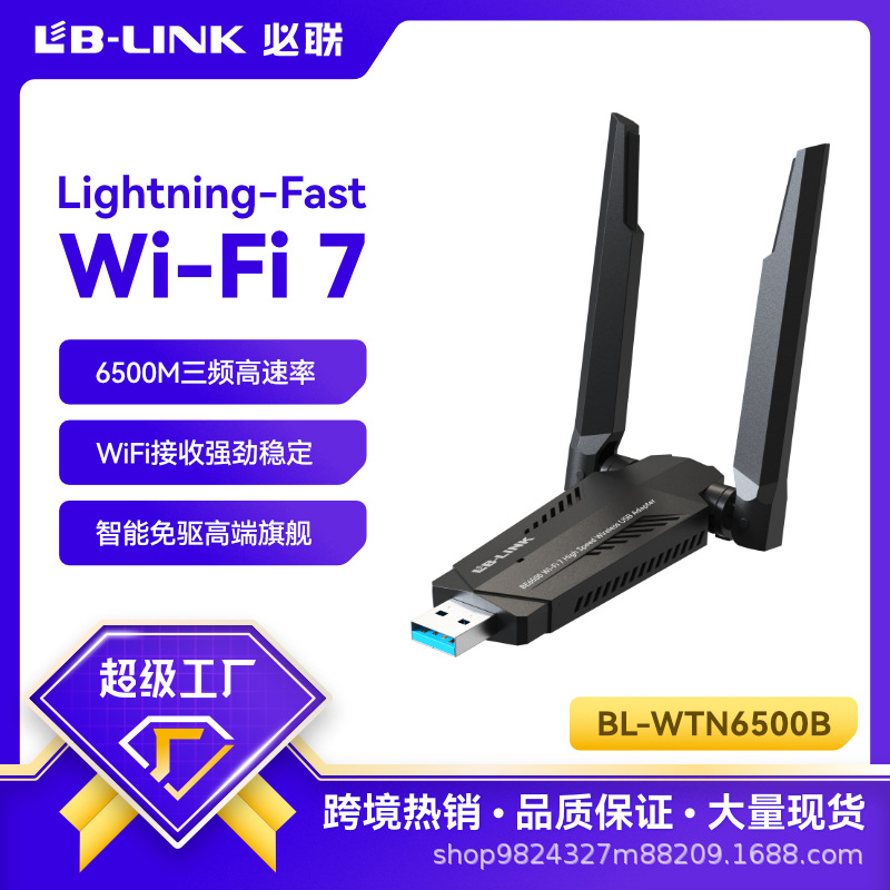 Бесплатная беспроводная сетевая карта Wi -Fi7 Triple -Frequency 5G настольные компьютеры Примечания приемник USB Внешний 6500 м высокая мощность