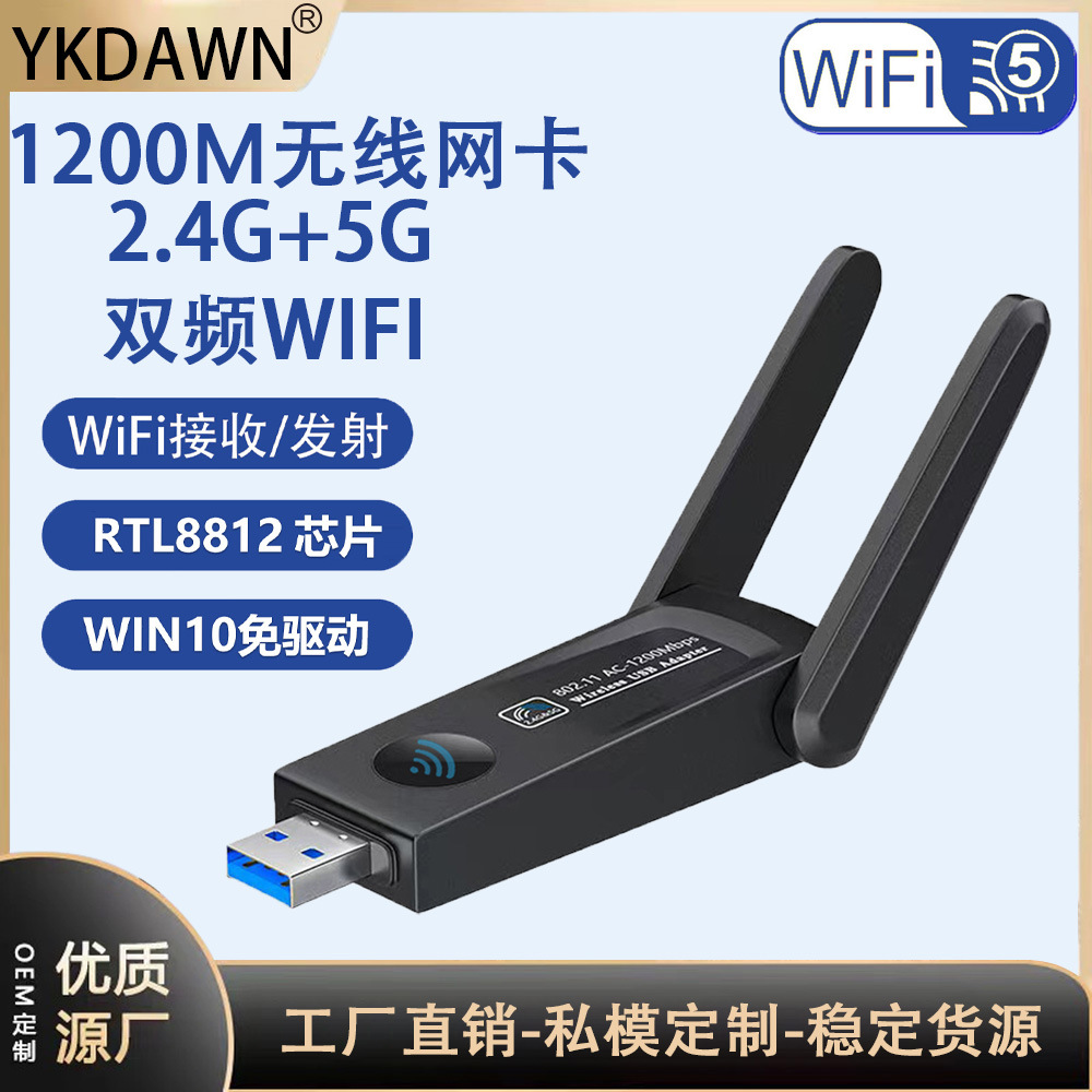 1200 м Двойной частота Gigabit USB3.0 Беспроводная сетевая карта Wi -Fi -приемник RTL8812BU Win10 Free Drive Free Drive