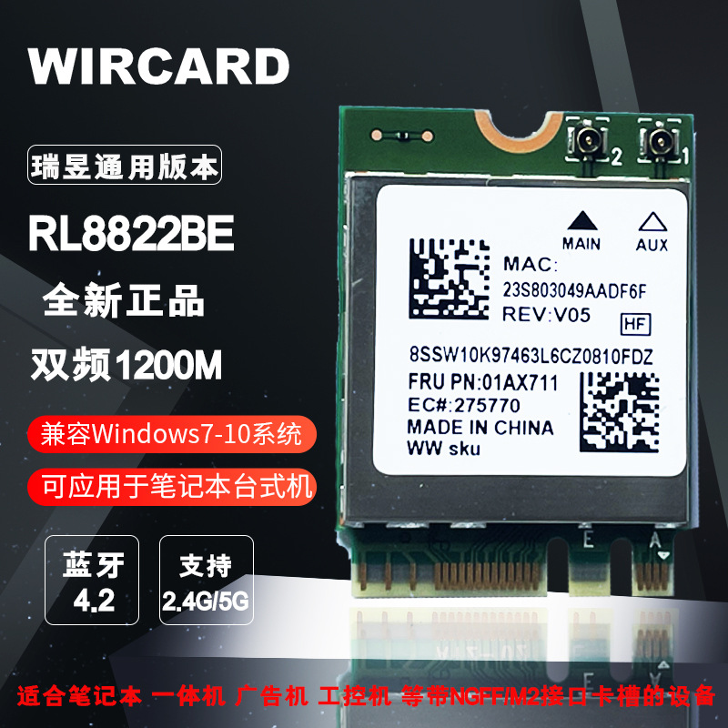 Realtek Rtl8822be Двойной частота 867M Bluetooth 4.2 M.2 Встроенная беспроводная сетевая карточка
