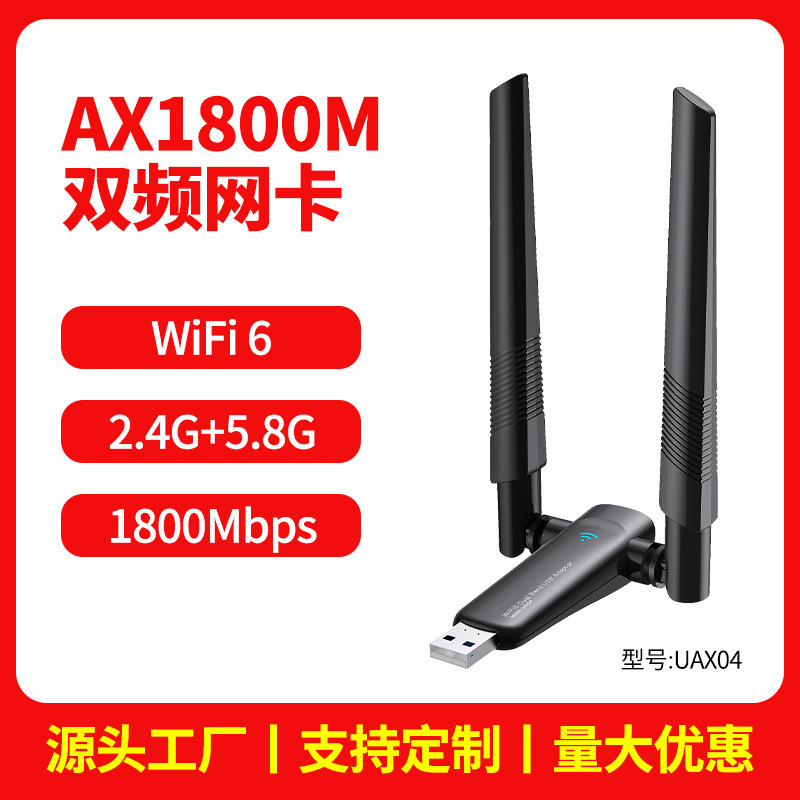 USB сетевая карта Wi -Fi6 беспроводная сетевая карта Gigabit 5G Двойной частота AX1800M настольный компьютер Wi -Fi -приемник