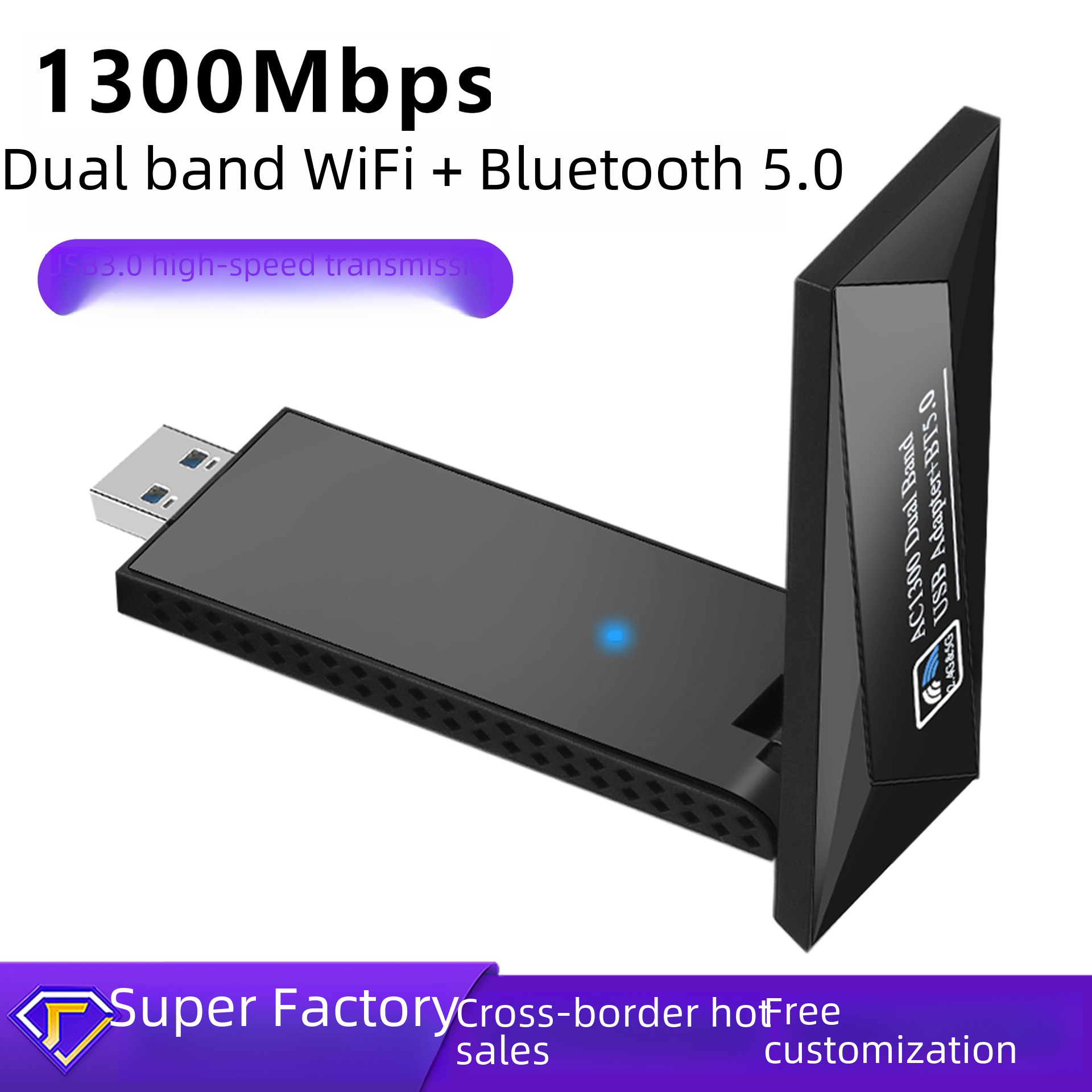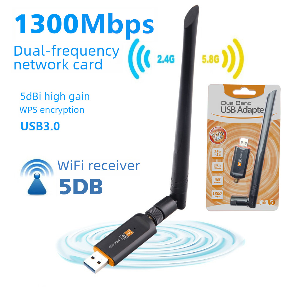 Двойная беспроводная сетевая карта 1300 м Высокоскоростной Wi-Fi-приемник 2.4G/5,8 г двойной беспроводной сетевой карты USB-карты USB