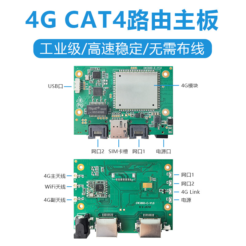GW386D 4G Dual -Network Port Gateway Plug -in -in Router 4G до Wi -Fi для проводной платы CPE PCBA