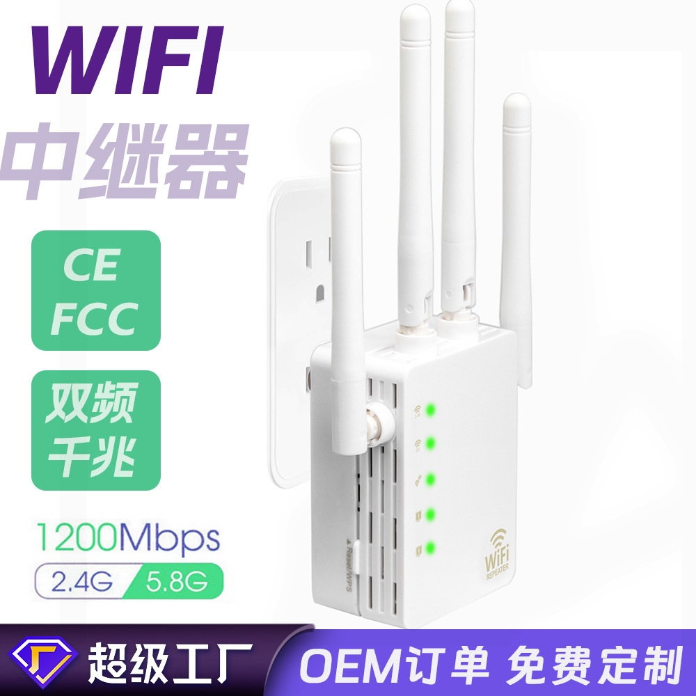 Горячий производитель с высокой частотой двойной частоты 1200 м Wi -Fi реле беспроводной беспроводной сигнал усилитель расширения 5.8g