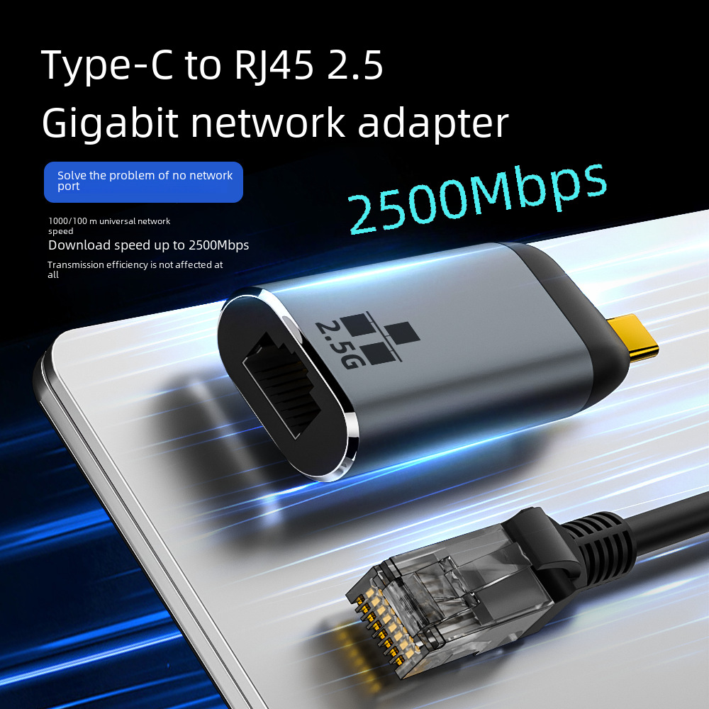 Gigabit Network Card Type-C 2,5 г высокоскоростной 2500-метровой игре Hui NAS-управляемый кабельный конвертер USB Transit
