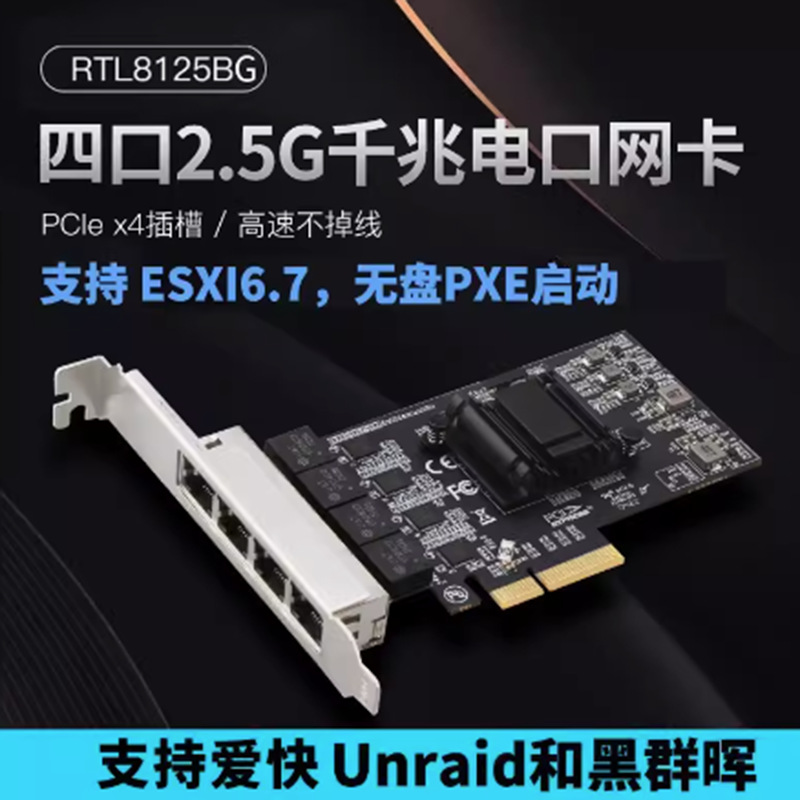 RTL8125BG Четыре порта 2.5G Электрическая гигабитная гигабитная сетевая карта поддерживает Exsi6.7 без запуска PXE высокой скорости скорости.