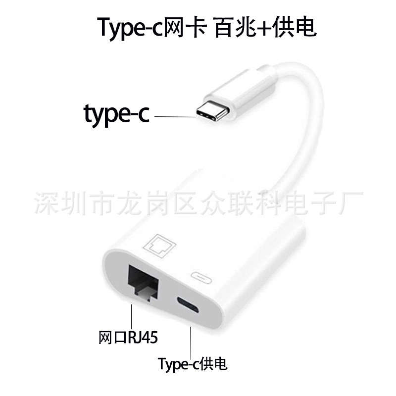 Применимо к кабельной сетевой сетевой карте Apple Type-C в RJ45 100M сетевой конвертер зарядка Интернета второй в одном
