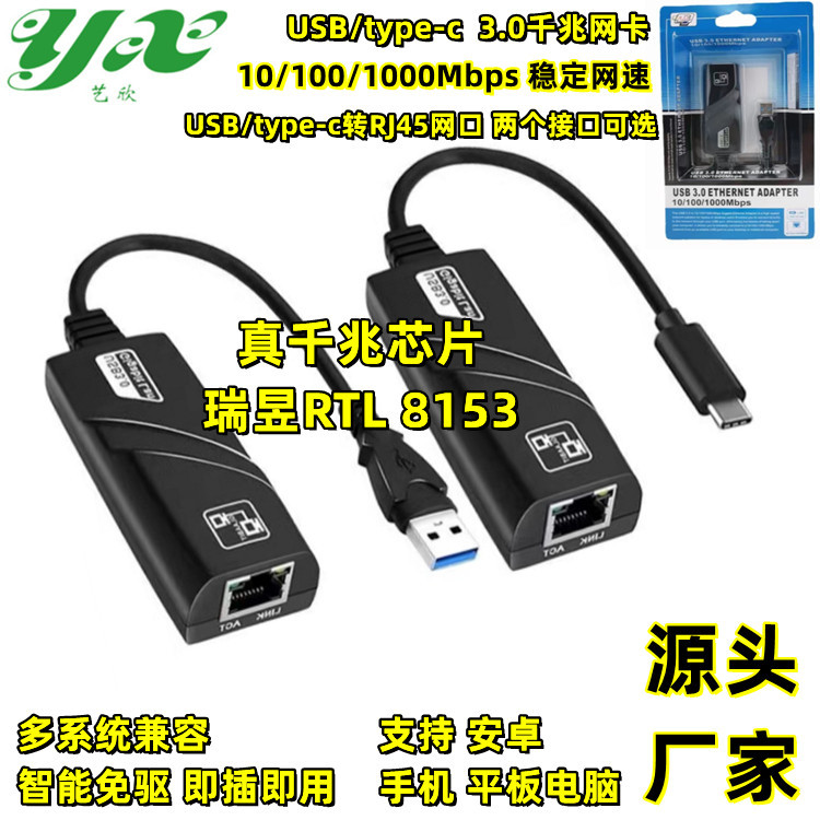 USB3.0 Gigabit Network Card Type-C Transit RJ45 Внешний кабельный кабель Ethernet Cable Cable Free Driver