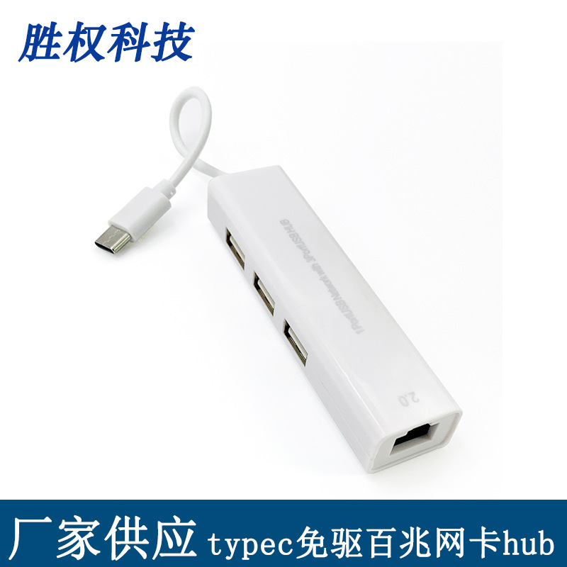 Type-C для сетевого порта RJ45 USB2.0 Сетевая карта с концентратором бесплатного драйвера 100MD Computer Network Card