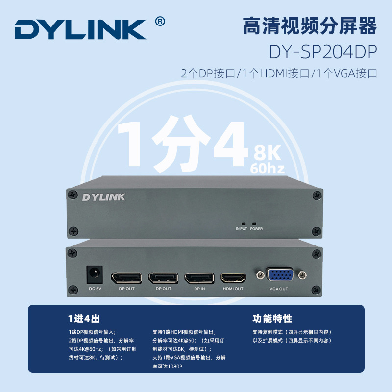 DA YA 1 точки 4 Mixed HD 8K Scales Cassionor 4 Port DP/HDMI/VGA DY-SP204DP