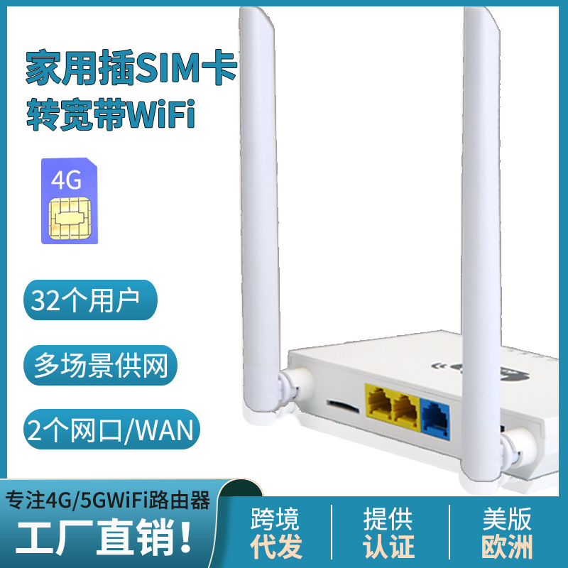 Вставьте SIM -карту 4G беспроводной маршрутизатор Wi -Fi Hot Gigabit Gegabit Gear Wide River Home Home Home Monitoring CPE