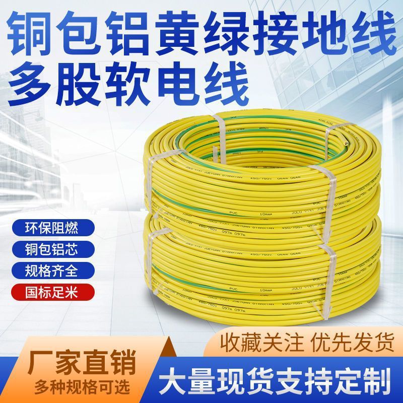 Желтый -грин двойной линия заземления 4/6/10/16/25/35 квадратный много -стук мягкий электрический проволочный
