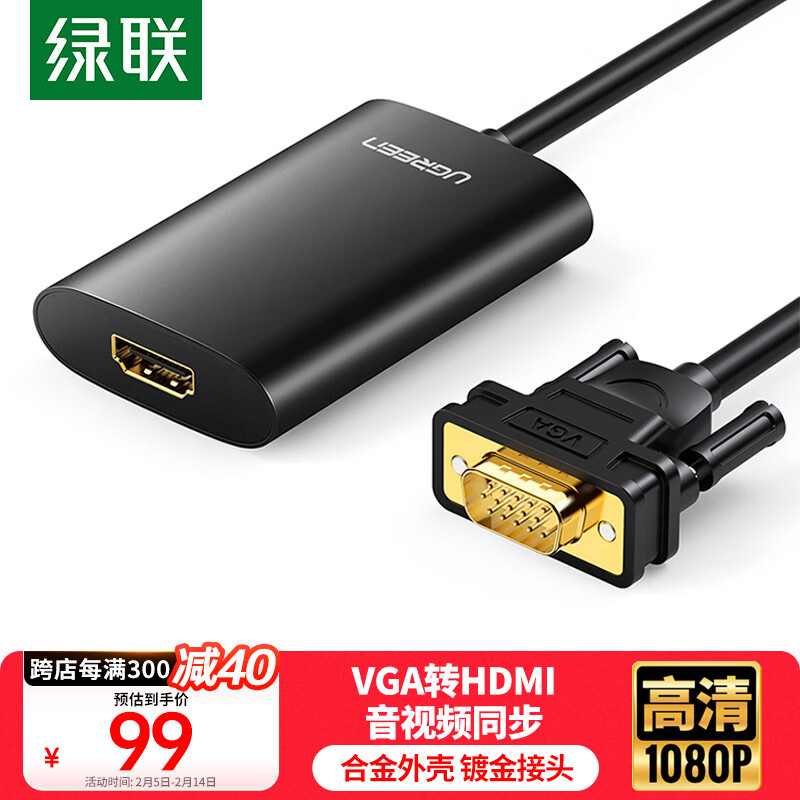 绿联 Кабельный преобразователь VGA в HDMI с аудио -интерфейсом проектор HD Видеоадаптер.