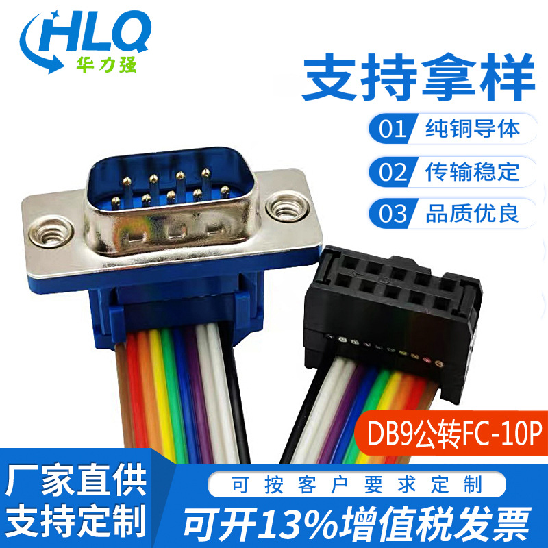 DB9 MALE-FC-10P 2,54 Женская головка может быть настраиваемой кабель кабеля адаптера. Длина 0,3 м может быть настроена