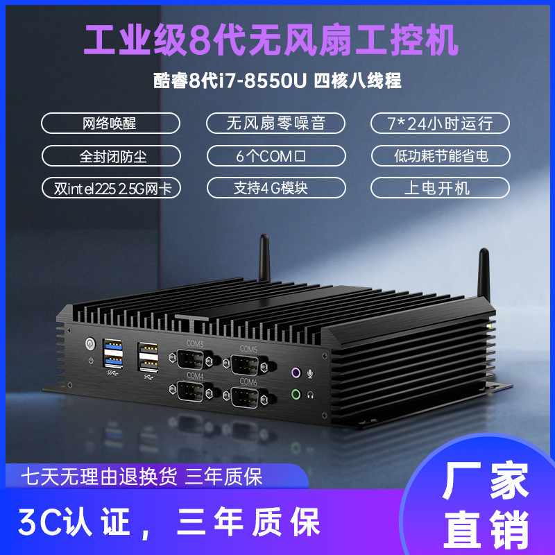 Multi -Serial Port Embedded Fan Bless Industrial Machine Multi -Mesh Visual Host PCI/PCIE.