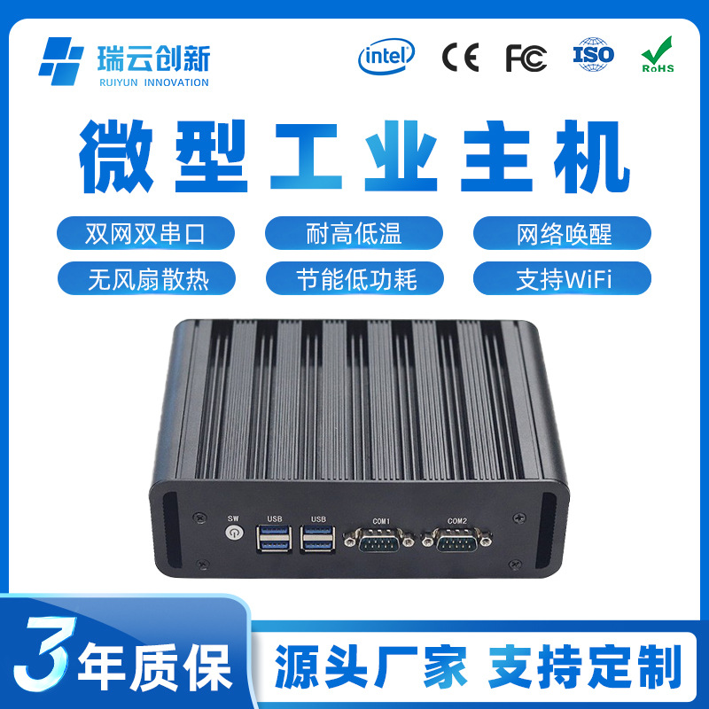 Mini Industrial Control Machine Встроенный компьютерный хост управления промышленным управлением J1900 Квадратный квадратный фан -без вентилятора Двойной сеть Двойной серийный малый промышленный контроль
