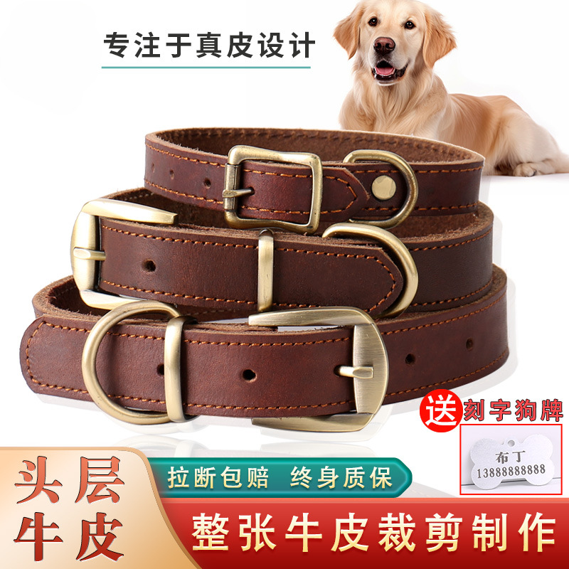 Подлинная кожаная собака -собака ошейник ошейник воротник воротник Туяющий веревка веревка из коровьей на заказ бренд собаки маленький средний большой большой большой
