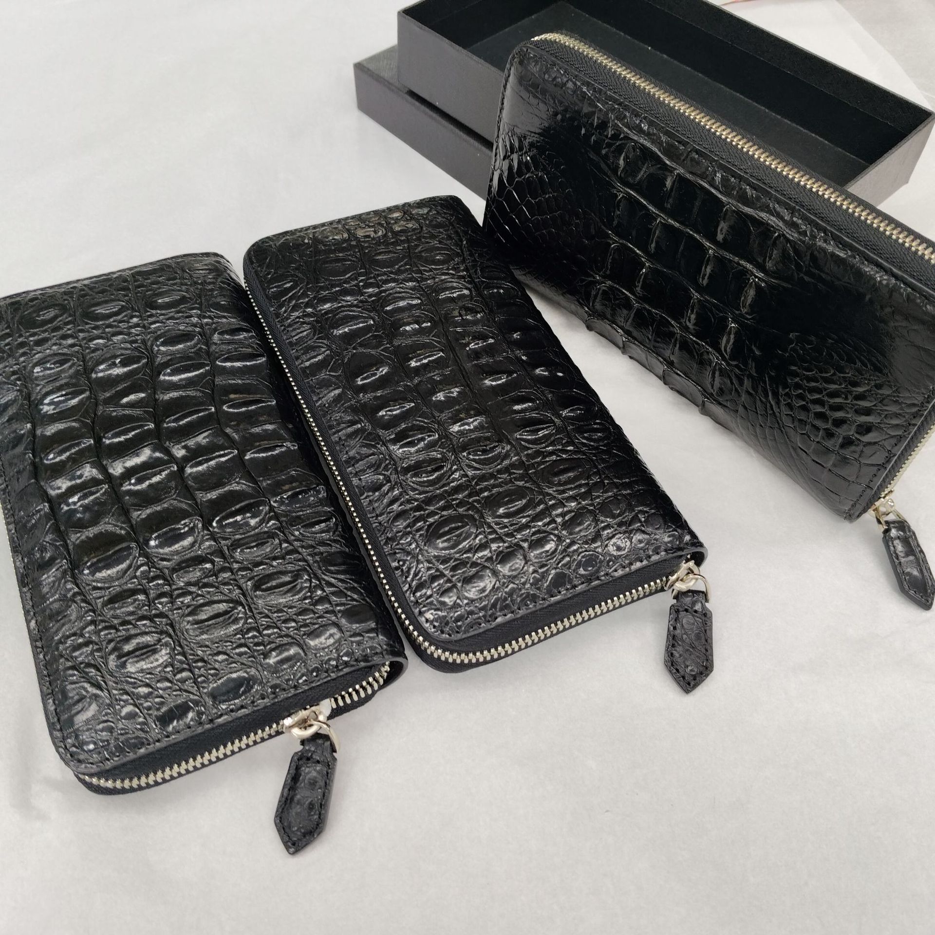 Мужской череп, бумажник, маленькая сумка клатч с молнией, крокодил