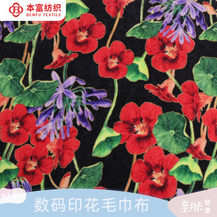 Slipher Полностью вырезать бархатное полотенце 320G Черное дно красный цветок цифровой печать полотенце ткани