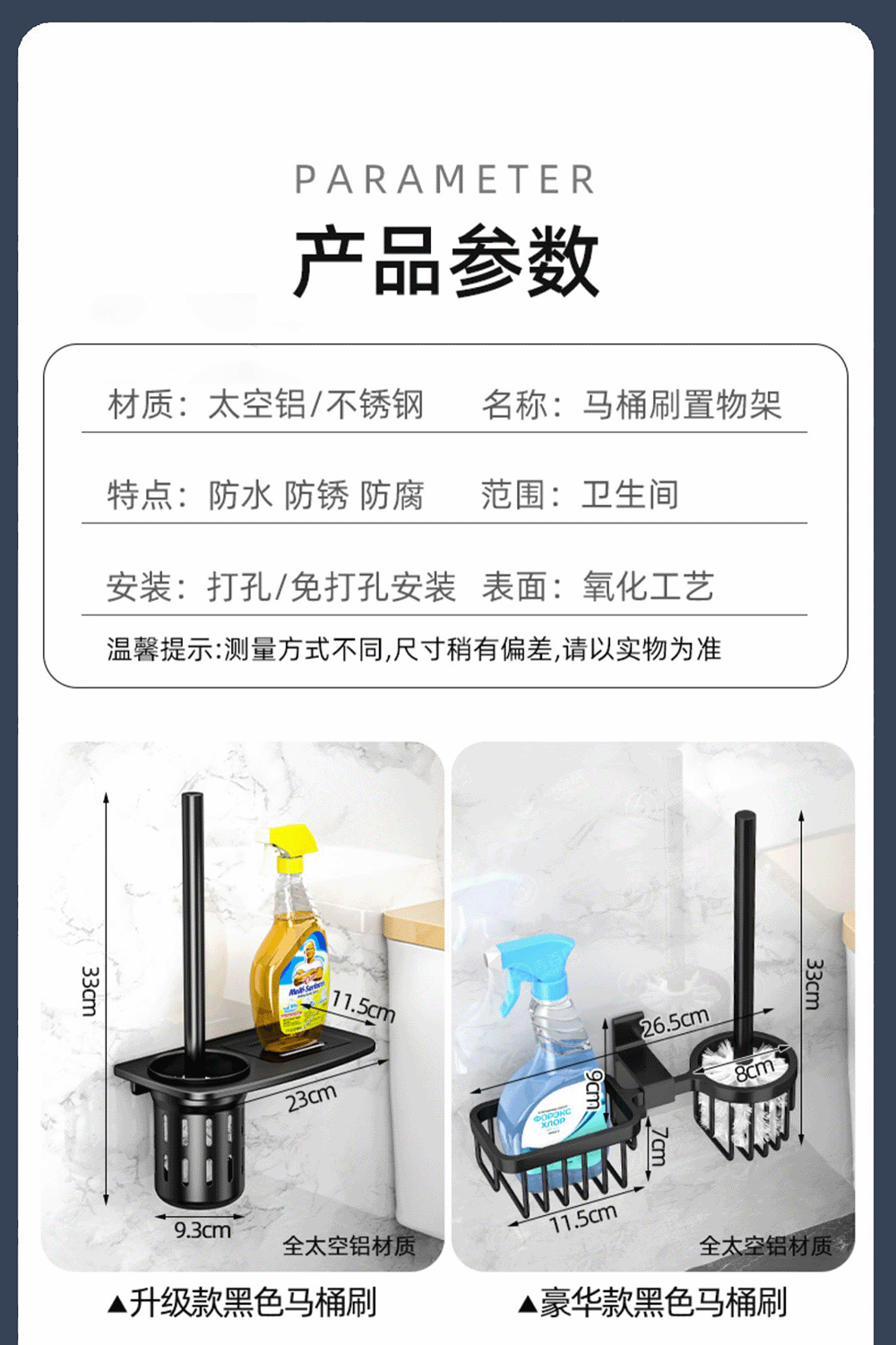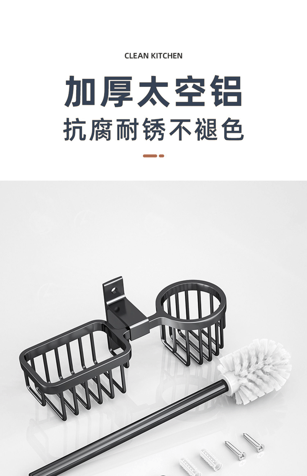 Номер товара | Черная и серебристая алюминиевая полка для унитаза с двумя прорезями |