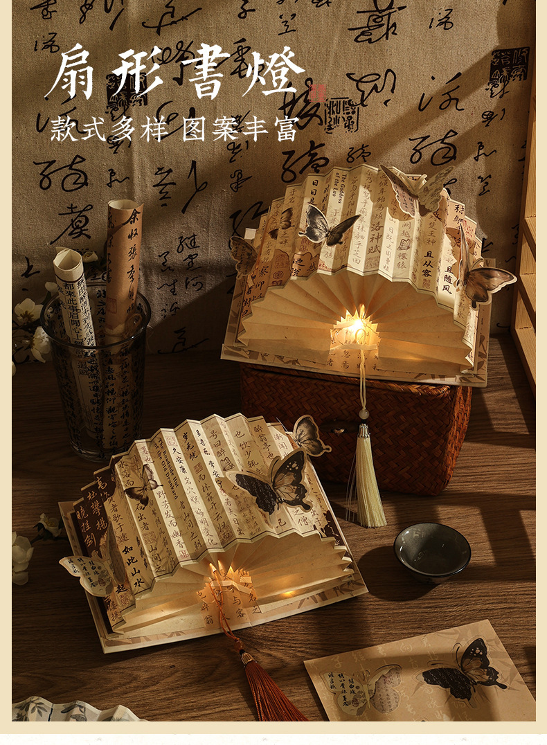 Номер товара | Серия «Танец бабочек» - китайская книжная лампа в форме веера |