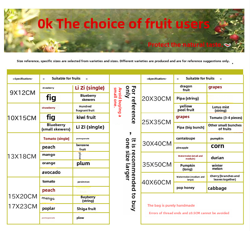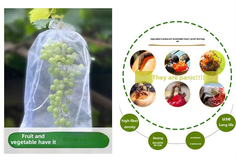 | Использовать | Упаковка фруктов и овощей в пакеты для защиты от насекомых и птиц. |