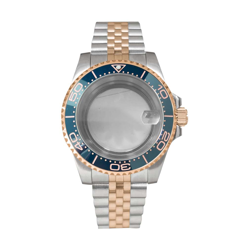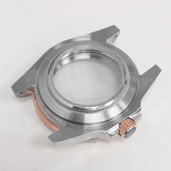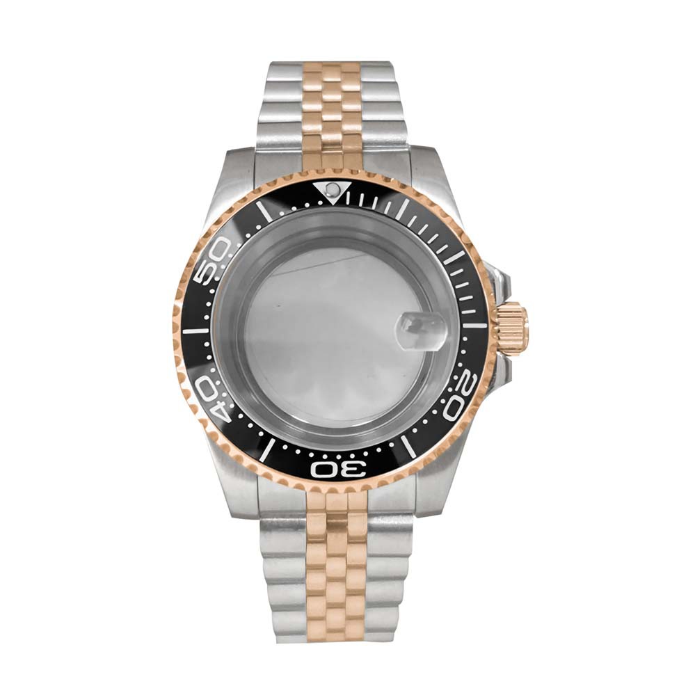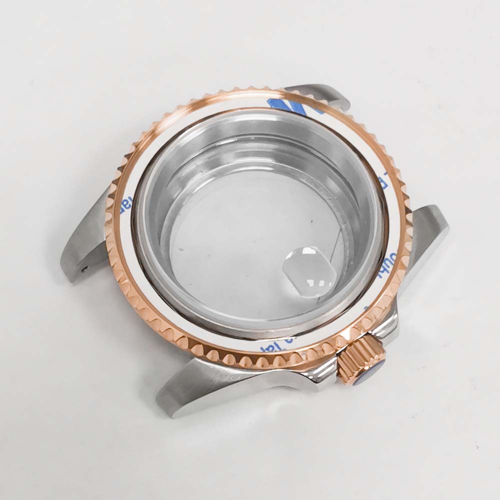 11- Розовое прозрачное дно корпуса + сапфировое увеличительное стекло + ремень пятью батами + выпуклое кольцо из розового золота SUB