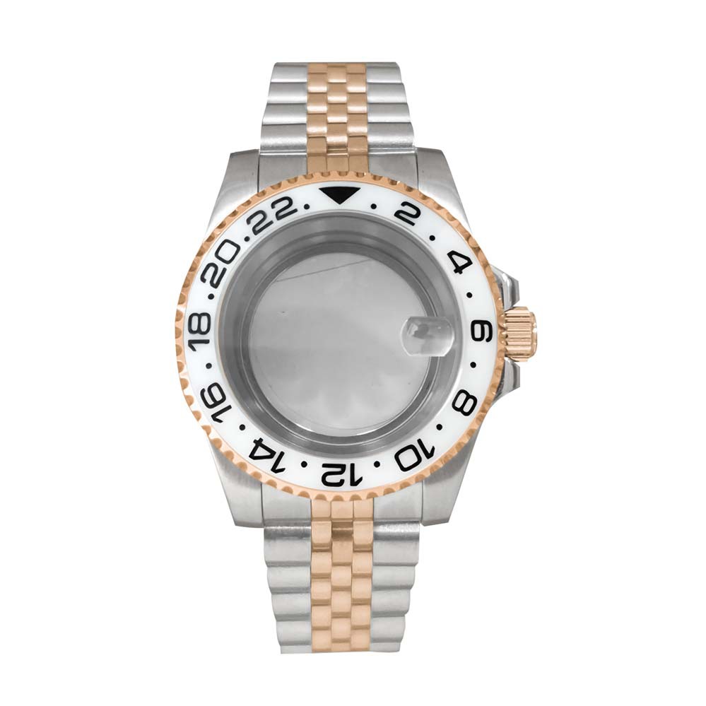 01-Jianmei прозрачный нижний корпус + сапфировое увеличительное стекло + ремень на пять бат + черные буквы GMT и белый круг