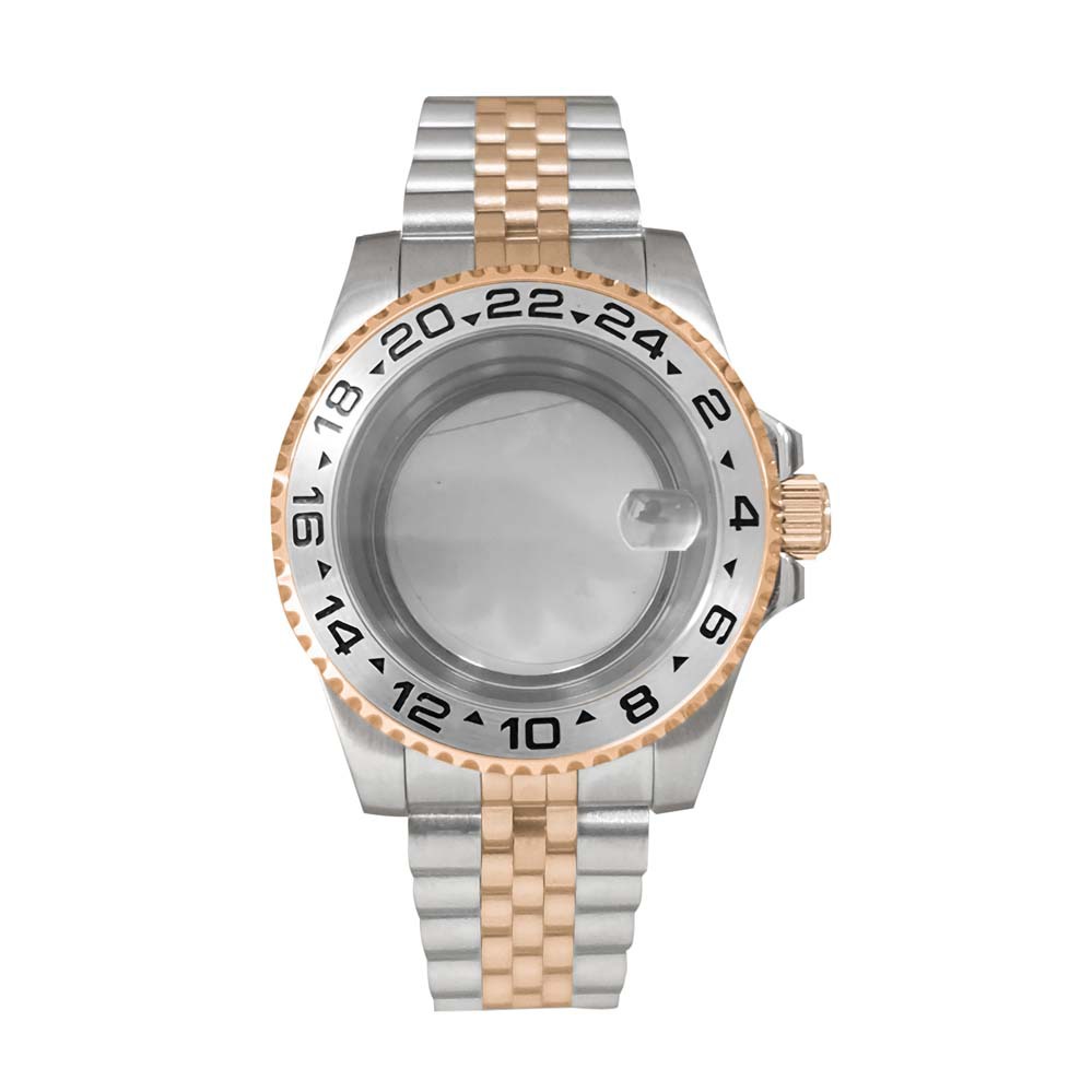 17-Jianmei прозрачный нижний корпус + сапфировое увеличительное стекло + ремень на пять бат + черное кофейное кольцо с золотой надписью GMT