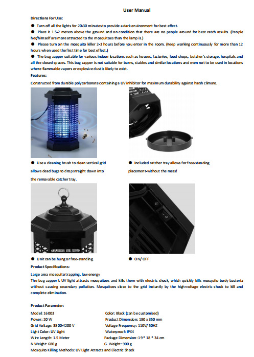 Категория продукта | Фиолетовая световая приманка + электрический истребитель насекомых |