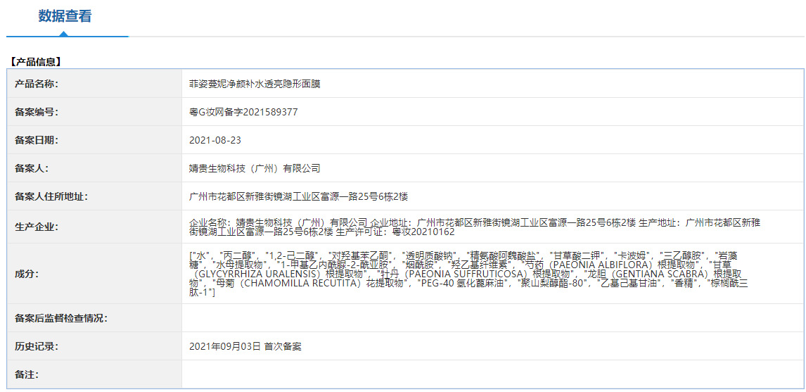 [非特化妆品备案证号] | [粤G妆网备字2021589377] |