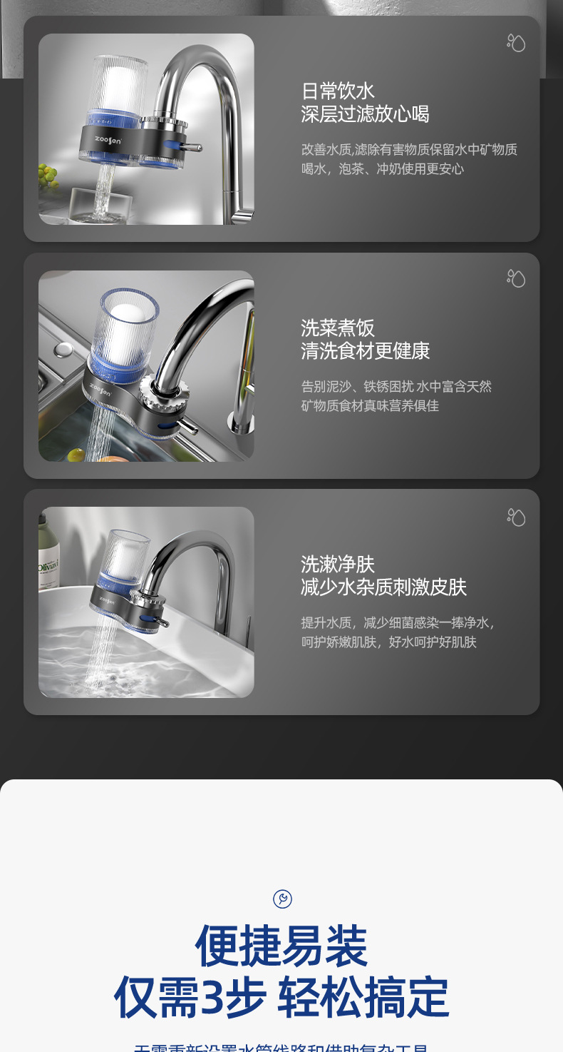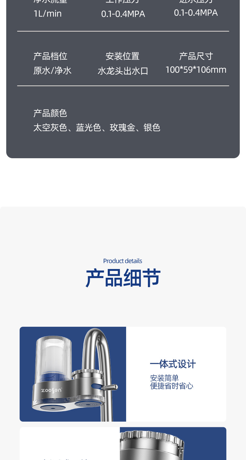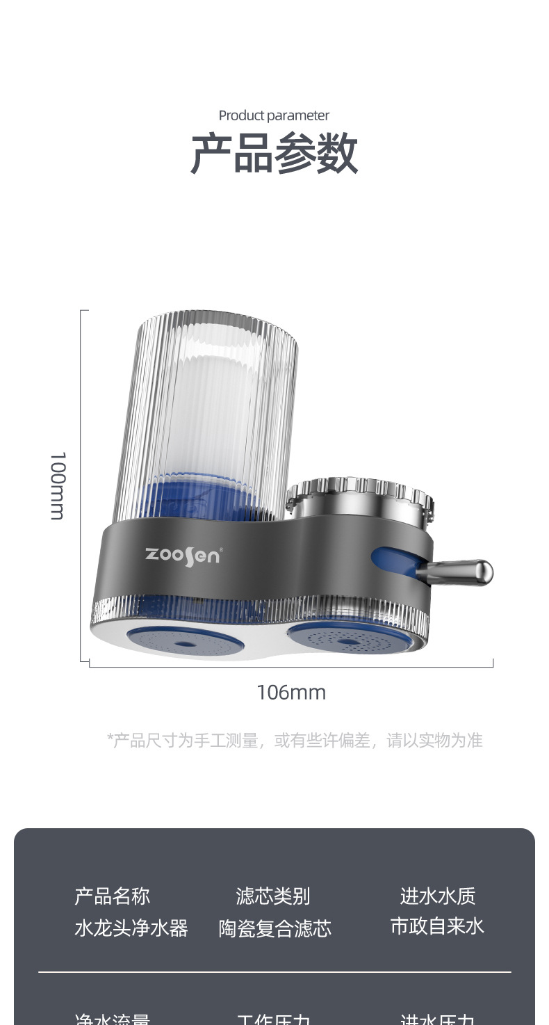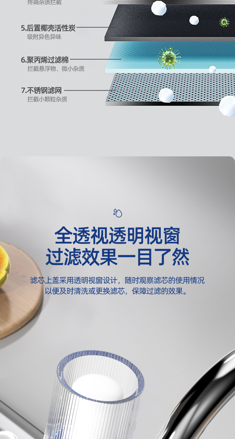 | [滤芯] | [石英沙层,不锈钢滤网,陶瓷滤芯,活性炭,超滤膜] |